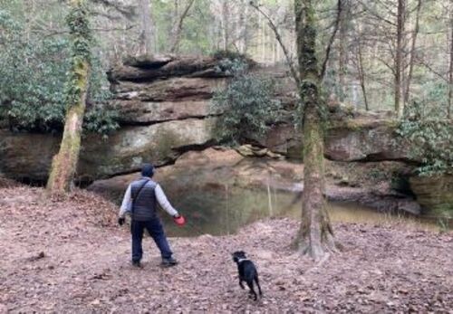 サンクスギビングの連休はずっと冷え込んだレキシントン、特に最終日の日曜は雪、その前日に出かけたのがRed River Gorgeです。Rock Bridge Trailをどんどん下ってき、やっと川べりに出ました。川をまたいでRock Bridge Archがあり、更に進んでやっとCreation…