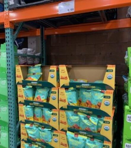 知り合いから「Costcoに干し芋があるよ~」と聞き、早速出かけてきました。お菓子コーナーやドライフルーツなどがある場所を探したけど見つからない、、、と思ったらビタミン剤とかのある端っこで見つけました。こんなカラフルな梱包で、見た目では干し芋と…