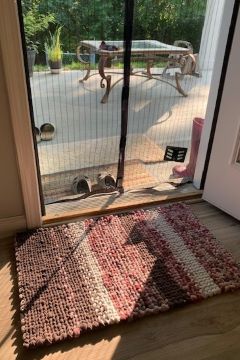 シンシナティに住んでいた時に教わった裂き織り、古い布地を再生利用出来て、何も考えずに一心不乱に織る時間が楽しく、新たな趣味となって数年です。こちらへの引越しで、古くなったドアマットなど数枚を捨ててきましたが、大き目の1枚は持ってきて、パティオへの出入り用のドアマットとして使っていました。淡い色合いのシーツやシャツなどの布地を裂いて作ったので、汚れが目立ちます。レキシントンに越してすぐに新しく作り始めましたが、半年経ってやっと出来上がりました。古い掛布団カバーなどで作りましたが、計らずも秋色になっていい感じです。まだまだ古い布地は沢山あるので、次は植木鉢の下に置くように小さいのを数枚作ろうかなぁ、と計画中です。